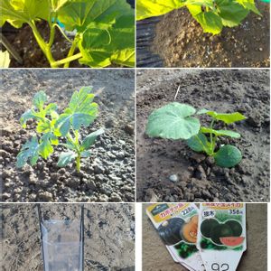 一昨日午後の作業記録です。 (非公開で投稿してました💦) 夏野菜の苗を植えました。 ゴーヤは2種類。サラダゴーヤと沖縄中長。これは、カーポートの南側へ。 スイカも2種類。黒皮小玉と紅小玉。先日播いたお豆さん達の西側へ。 カボチャは栗プチの1種類を2本。玉ねぎがある畑Bへ。 スイカとカボチャには苗を保護するシートをかけましたが、ゴーヤはネットに誘導するため、立ち上がりにペグを刺しました。