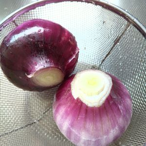 早生の紫玉ねぎ、初収穫です。 まだ直径6センチと小さめですが、使い切りサイズでちょうど良いです。 まだまだ茎はピンピンしているので、本格的な収穫はもう少し先かな。