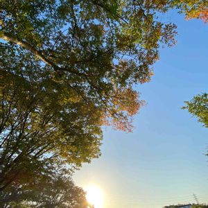 昨日の公園 雲一つ無い空 紅葉が始まっています🍁