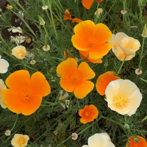 ハナビシソウです。 別名、カルフォルニアポピーです。写真はもちろんカルフォルニアではなく、近所で撮りました。昨年まではオレンジ一色と思っていましたが、よく見ると黄色系が混じっていました。