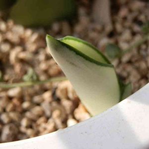 「サンスベリア ムーンシャイン」 昨年の夏に自分のミスで葉焼けさせてしまい傷みが酷かったので子株待ちでした 時間がかかりましたが「トリファスキアタ」は動き出すと成長も早いのでここからキレイに育てたいです!