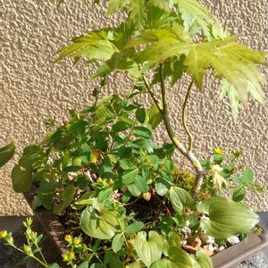 ①いつの間にかマイズルソウの実が赤くなり葉の色も変わっていました🔴🌿 ②クレマチス·モンタナ 四季咲きじゃないけどポツンと1つ咲いていました🩷✨ 昨日📺️テレビで旭岳山頂で紅葉が始まったと言ってました〜😅キタ―――