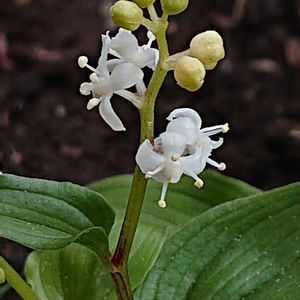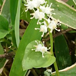 マイズルソウ キジカクシ科 名前ノ由来は、葉を2個広げた姿を鶴の舞う姿に例えたという説や、葉の模様が家紋の舞鶴紋に似ているからという説もある。 山地から亜高山帯の針葉樹林内に多く生える多年草。 花期 5〜7月 小さく、可憐に咲いていました🤍