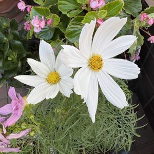 お庭のお花さんです。💖🤍 コスモスさんが良く咲いています。💖🤍 とっても可愛いです〜!🥰💖🤍😘