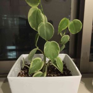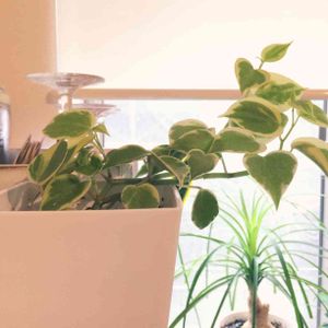 ペペロミアって 1000種以上もあるんですね‼️ 肉厚のハート型、斑入り葉っぱ、 丈夫そうな茎に惹かれてお迎えしました😊 店頭ではナイロンに包まれてコンパクトに見えましたが、お家でナイロンはずすと、 ボリューム満点な一鉢で、すぐにでもお引越しさせた方が良さそうです💦