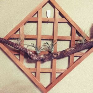 我が家のエアプランツさん。セリアの木枠と拾った枝を組み合わせて壁かけにしてますが、着生するのはいつになるやら...(´-ω-)