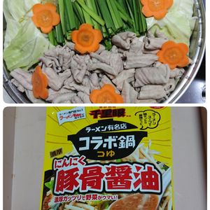 【今日の晩御飯】 今日は簡単御飯だよ(o^∀^o) 【もつ鍋】 『韮』 もつ🐷、キャベツ、人参🥕 もやし、豆腐 味付けはしたの物を使ってみた‼️ 二袋買ったわ😅 その他 納豆 キムチ 蜜柑🍊など もやしは鍋の下にたっぷりと 入っていていますよ(*´▽`*) お腹の足しに豆腐も入っています👍韮の下にあるよ‼️ どれどれ ちょっと味見✌️ う~~~ん ニンニクが結構きいてるわ‼️ 御飯が進みそう(o^∀^o) お酒が進みそうかな⁉️