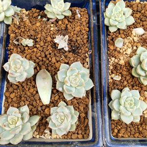 休みだったので植え替え植え付け〰🎉 めっちゃ暑いっす😵 葉挿しっ子を一寸鉢に移動〰 あれ❓パステルとファンタジーが居ない…