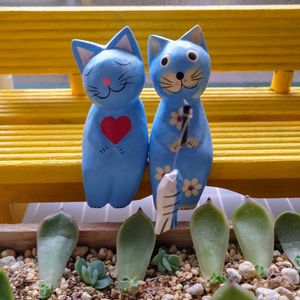 おはようございます ☀️ 🌱エケベリアの葉挿し 😺ほのぼのと寄り添うインドネシア雑貨の木彫りにゃんこ 何個か仕立て直しした時の葉挿しです どのエケベリアかは後のお楽しみ👀☺️