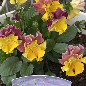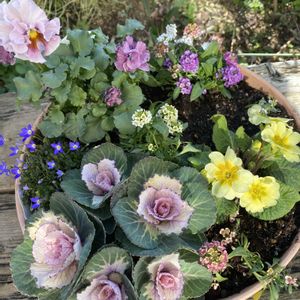 おはよう御座います🥰 青空が見えますが 北風が強く寒いですね🥶😨 昨日園芸屋さんに行って来ました😋 見るだけと心に決めたのに また可愛い子ちゃんがいたので つい手が伸びて買ってしまいました😅🤨😳🧐🥲 花苗うえたさんの ビオラサンピラー ミニパンジー春マンボーどちらも可愛い💕🩷 ②は春マンボーの拡大したお花 可愛い寄せ植え飾っていたので 許可を貰って撮って来ました📱📱 可愛いお花が沢山有るのでお客様 いっぱいです。 黒田さんのYouTube人気ありますから。 以前は静かなお店でしたけどね🥰