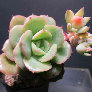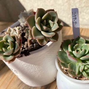 【エケベリア属 ニクサナ】 Echeveria 'Nicksana' Echeveria 'Nicsana' 別名 ニクサーナ ニクサーサ 中国名 妮可莎娜 韓国名 니크사나 【エケベリア属 みどり牡丹】 Echeveria 'Midoribotan' 和名 緑牡丹 カクト・ロコさんの ネームタグは【みどり牡丹】🏷️ 羽兼直行氏の著書掲載の 碧牡丹(みどりぼたん) Echeveria 'Midoribotan' とは、また表情が異なります 書籍掲載の碧牡丹の交配式は、 パルメリー×カンテ Echeveria palmeri×Echeveria cante 羽兼氏曰く 「日本に最初に入ってきたパルメリーは、みどり牡丹 E. 'Midoribotan' と名付けられた」 ☝️との事です いとうぐりーんさん、 ハニーミントさん、 大倉園芸さんでは、 みどり牡丹をニクサーナで販売 ニクサナ(ニクサーナ)自体は、 作出者、交配親共に不明 DAISOさんでも扱いのある 超普及種のみどり牡丹ですが、 この様に名前が混乱したりと、 出自不明な謎多肉になります 牡丹の名のつく多肉を、 ご紹介させていただきますね 🌹茜牡丹・アトロプルプレア Echeveria atropurupurea 🌹紅牡丹 Echeveria ? 🌹桜牡丹・ゴースティン・ゴースティ Graptosedum 'Ghosty' 🌹沙羅姫牡丹(さらひめぼたん) Echeveria 'Sarahimebotan' 🌹すみれ牡丹・バイオレット クイーン Echeveria 'Sumirebotan' Echeveria 'Violet Queen' 🌹青典牡丹・碧牡丹 Echeveria 'Seiten-botan' Echeveria 'Midoribotan' 🌹錦牡丹 Echeveria 'Nishiki-botan' 🌹白牡丹・ティテュバンス Graptoveria 'Titubans' 🌹姫牡丹・ハルビンゲリ Echeveria halbingeri 🌹緑牡丹・グロボーサ Echeveria globosa 🌱番外編(センペルビウム属)🌱 🌹紅牡丹・ストレイカ Sempervivum 'Straiker' 調べだしたら、凄い数に💦 取り敢えず挙げてみました (;゚∀゚)=3ハァハァハァハァハァハァ