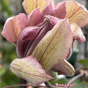 クレマチス❤︎ ✨ヴァイオレット・エリザベス ✨ 今朝はここまで開いた!💓 🏷️ピンクワールドへようこそ💕