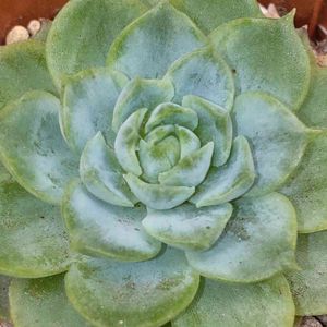 中心部をしっかりと閉じて 夏越し中の エケベリア・ライムアンドチリさん😻💚🤍 残暑厳しく お水はもう暫くお預けです…🚿