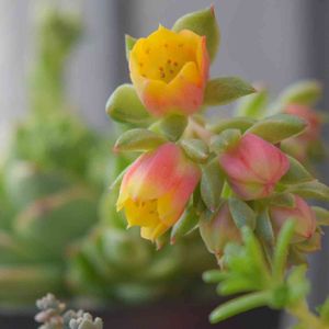 こんばんは🤤💕やっと咲きました💕 サボテンみたいにパッカン‼️にはならないのね〜 我が家での多肉初開花🥳🎉 可愛いくてチョッキン✂︎できんがな…