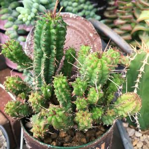 ユーフォルビア サブマミラリス(姫麒麟) この樹型が気に入った😀 メキシカンハットかぶって 片手を上げて「オーラ!」 って感じ🤗 家での愛称は「アミーゴ」 ✨🌱✨