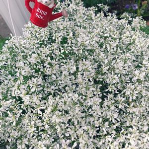 毎年買っちゃうお気に入りのお花🌸 ユーフォルビアダイヤモンドスノー💎☃️ 贅沢に3株植えで、猛吹雪❄️❄️ 真っ白に咲いて、庭でも一際目立ってます🤩 👵「涼しげね〜これは何のお花??」と尋ねられる程、ご近所さんにも好評です💎 名前が長くて説明する時、ちょっと恥ずかしい🤣。 花壇にも寄せ植えにも、使える優秀な子‼︎ いっぱい植えたので夏が楽しみだなー🍉 梅雨で脱落者が出ませんように🙏