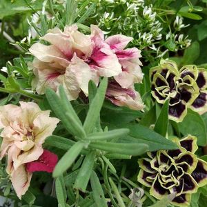 寄せ植えの中のペチュニアさん達🌿 昨日の土砂降りにやられて幾つか花弁がグチャ!ってなってました😣💦 全部咲きそろったら綺麗なんだけど難しい😆💦