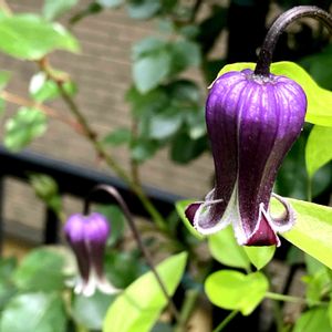 クレマチス ビチセラ系 ベティコーニング テキセンシス・ヴィオルナ系 藤煤竹 藤煤竹、次々開花中のとこにベティコーニング開花なのですが、どこ?ていうくらいに色が酷似😣ベティさん、挿し木したものだから、ま、まあ💧 さらに後から薄青系の雪小町が咲く予定だけど、多分それも見分けつかないわ 黒が欲しいわ!