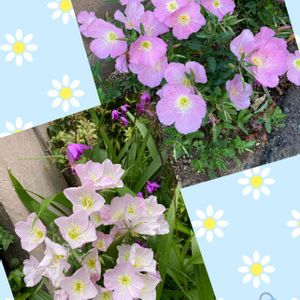 今日のお花 ツキミソウ、、ヒルザキツキミソウだけど、、、☺️ ユウゲショウも艶やかに咲いていました💕 同じマツヨイグサ属 いつもの散歩道にて。