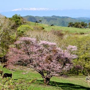 宇瀬水牧野 一本桜🌸🌳🌸🌳🌸 紅山桜が咲いていると聞いて、 朝一番で市営牧野へ🌱🐮🌱🐮 目にも鮮やかな紅山桜🌿 のんびり草を食む牛🐮 それを優しく見守る焼石連峰🗻💓 気持ちのよい春日☀🌱☀🌱 2021.5.15📷✴