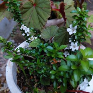 盆栽だったハクチョウゲ(白丁花)5株 地におろしたら大きくなり、少しお邪魔さんに🙇 今年、ばんばんカットして捨てるのにしのびなくて 増やすきはないのですが少しだけでもと空いた鉢に挿していたら 花が咲いているゥ――☺😍 花が終われば盆栽仕立てに・・・ (〃艸〃)ムフッ・・だって盆栽→地植え→盆栽だと笑えるでしょ(〃艸〃)ムフッ 小さに葉の中に花が一段と大きく見えて可愛く映えます☺ アカネ科/ハクチョウゲ属 常緑低木 ハクチョウゲ(白丁花)という名前は、丁字型(ラッパ型)の白い花を咲かせることが由来☺ 別名は「バンテイシ(満天星)」とも呼ばれ、ハクチョウゲの咲く花姿が満天の星のようであることが由来とされています(ネットより)🤩🥰 今まで邪険にしていたけれど🙇こんな素敵な別名があるのを知ったら これからは大事にしなくっちゃ(笑)