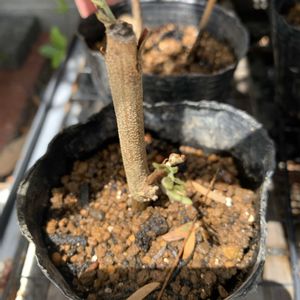 去年の秋から挿し木にしてたエバーフレッシュ、やっと成長する気になったのかしら? 😓前回も根が出て葉っぱが伸びるまでに半年くらいかかったから、その気になるまで待つしかないのかも? ちなみに、今回も前回も赤玉だけでさかして3ヶ月は全く動きが無かったから諦めてたんですよね。 それで前回はポトスの鉢植えにさしてたら自然と発根したようで、ニョキっと葉が開き始めたからビックリ❣️ 今回は、秋に赤玉に挿し木してサンルームで管理してたけど葉は枯れて「ただの棒」でしかなかったから、他の植物の植え替えで腐葉土と赤玉を混ぜた余ってる土に挿し木ておいたんです。