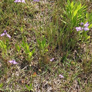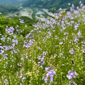 河川敷で見つけた薄紫の綺麗な小さな花🌸 特徴は茎の長さが20センチ~30センチですぐ折れそうな位細く、多分葉は無さそうに見えます。 花の蕾が上から、結構下の方まで沢山あります。 どなたか名前教えて下さい⁉️