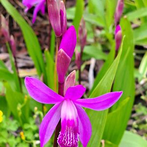 「今日のお花」「シラン🎵」 こちらは、先月お出かけ先でのお花達です🥰 ①枚目…「シラン」 ②枚目…「ドイツアヤメ」 ③④枚目…「マツバウンラン」