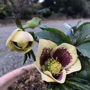 おはようございます😃 茎があまり伸びなかったせいか、上向きのクリスマスローズがついに咲きました✨ 📣いいぞ〜🤗 今日も皆さんにとっていい日になりますように💕🎶