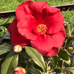 おはようございます😃 裏庭でぱっかーん🥳🎉 直径を測ったら昨年と同じピッタリ15センチでした✨✨ (昨年は3月17日巻尺付きで投稿済み) 大輪の赤い花が咲く椿の木は裏庭に2本あり、今数え切れない程蕾が付いているので、これから次々と咲くのが楽しみです🎶🙌🏻🙌🏻