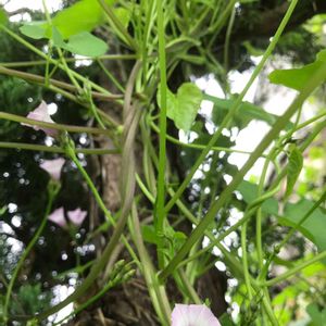 その2 ホシアサガオはあっという間に甘夏の木や近くのカイヅカイブキ、計10本位に巻きついて、はびこるはびこる🌀🌀 放置しておくと木を枯らすほどの力があるそうで、手遅れにならないうちに、夫が毎年手でちぎり落としているそうです。 お花には気の毒だけど仕方ないかな。ごめんね🙇♀️