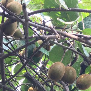 とんでもなく暑い日になりましたね🥵 体調の方は大丈夫ですか?😆 夫が6月始めにキウイを実ごと強剪定したので、数は大分減った感じだけど風通しもよくなり、下から見ると今は長さが7センチ位には育っています。 12月にコンテナ一箱位は収穫出来そうです😄🥝🥝🥝✨ キウイのお花を見たい方は、 🏷とんとんちのキウイ を👆して下さい🙇♀️💕