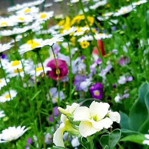 白いお花🌼の寄せ植え💚 白い花が好き💞なせいか作っている内に白ばかりになっていた🙄 ポットの花を今日は全部植えないと…焦る😱22日に餅つきするのでリビングに置いている花を片付けないと間に合わないよ~😂