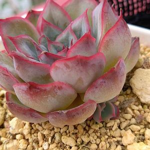 おまけに頂いた、おらいさんの夕波、葉挿しっ子✨ 一枚の葉っぱ🌿から3つも出てくれて🥰 縁のピンクがすでに可愛い💓 大きくしたいな✨