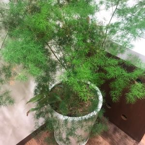 壁にぴったり張り付いて育っていたため、剪定された庭木の様な佇まいになられたアスパラガス・カリーアゲー様でした💈