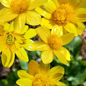 🌱 ヒメリュウキンカ(姫立金花)🌱 キンポウゲ科 リュウキンカ属 とてもキラキラした花びらのようなものは萼片(萼花弁)です。 2年前友人から1苗貰い今庭のあちこちキラキラです*✲゚*。♪ 2025 年3月7日撮影 🏷金曜キラキラに初参加させて頂きます。
