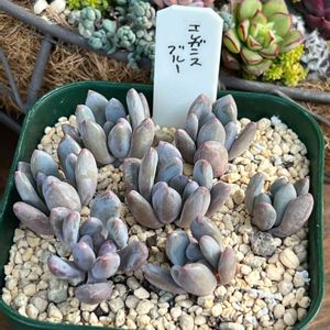 名前がわかりません😅 園芸店の寄せ植え教室で使った多肉です。 名前わかりませんでしたが、エレガンスブルーじゃないでしょうか? 皆さんどう思われます⁉️ フーケリーの確率が高くなってきました😅
