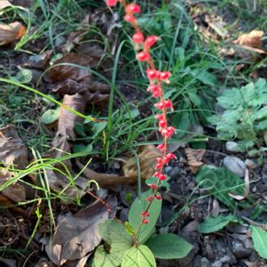 加古川の新井緑道をウォーキングしていたら"ミズヒキ"を見つけました。 道端に1輪だけ咲いていました。
