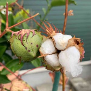 ウォーキングの途中、某法律事務所の花壇にとても立派な"綿花"が出来ていました。 "綿"の花は"ムクゲ"のような花🌼ですが、結実して弾けると中から白い綿毛が現れて、花のように見えるのでこの実を"綿花"と呼ぶそうです。