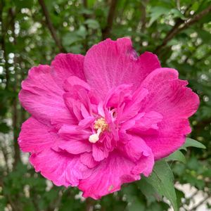 今朝、ウォーキングの途中で八重咲きの"ムクゲ"を見つけました😊