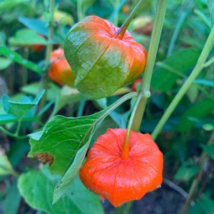"ホオズキ"が真っ赤に色付いています。 "鬼灯"とは、言い得て妙!