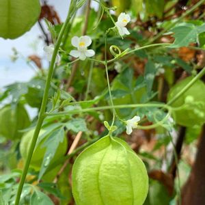 今朝、ウォーキングの途中で見かけた"フウセンカズラ"! 花も実も種も全部かわいい💕