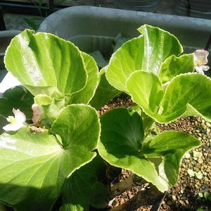 折れたベゴニアをプランターに差しておいたら、育って株の回りにたくさんの実生苗が生えてきていました。