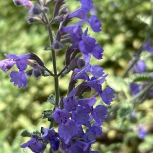 【キャットミント】《シソ科》 花言葉 「自由な愛」「無邪気」 別名 catnip キャップニット キャットミントと猫の関係は、紀元前にまでさかのぼります。 古代エジプト人は猫を崇拝したことから、おそらく猫がキャットミントを好むことも知られていたのかもしれません。 以来、中世ヨーロッパには漢方や料理などに使われるほど、その香りは猫だけではなく人間をも魅了する、”魔性の植物”と言えるかもしれません。 キャットミントには解熱・鎮静・消炎作用があると言われています。 その清涼感ある香りから、先述のような漢方や料理はもちろん、お風呂、ハーブティーなどリラクゼーションにも利用されています。 🏷美しく青きドヨウに参加します💙💜 2022.5.11