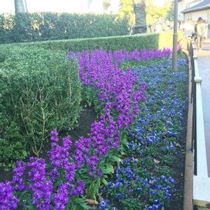 子供たち初めてのディズニーシー わたしは10なん年ぶり エントランス前にて〜🌼 紫のはストックっぽかったけど背が凄く高かったんだよなぁ???