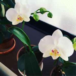 会社で部署ごと定期的にもらうはねだしのミディ胡蝶蘭🌼 実は家庭菜園は初心者の私ですが、職場は胡蝶蘭の生産販売会社の事務員です😂 たくさん貰うのですが、うちはちびがいて花がダメになってしまうので、このまま胡蝶蘭大好きなひーばーばのうちに持っていってます☺