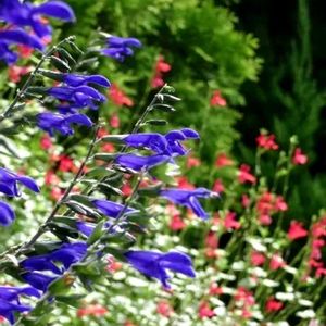 お散歩中に見たお花たち… サルビア ガラニチカ×2💙=メドーセージ スーパーサルビア ロックンロール ディープパープル×3💜 ⚫︎⚪︎⚪︎⚪︎⚪︎