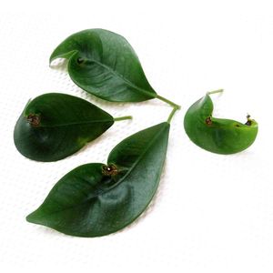 ガジュマル太の奇形葉。虫かな?と思ったけど違うかな?なぜか片側の枝に集中。