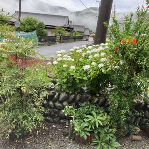 頂いた紫陽花が根付いて 下に植えた紫陽花がとっても大きくなり過ぎて上に植えている クチナシの花、風通しが悪いです 中々、花が咲きそうに無いので 肥料をあげようかなぁ? クチナシも大きくなると石積みが壊れるので…慎重に😱