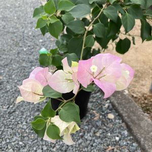 薄緑からピンク色のブーゲンビリア 姉の所に有り挿し木を頼んでいましたが…中々だったので購入しました 姉からも貰ったのですが、乾燥気味に水やりをしないといけない(葉っぱが下を向いてから)のに水やりした翌日に夫がまたもや水やりしてしまい 枯れてしまいました🤬 購入したブーゲンビリアだけになりました
